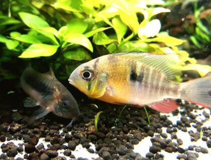 - Większe pielęgnice (np. pielęgnica zebra, sajka, pielęgnica Ramireza na styk) – zbyt terytorialne lub wymagające.